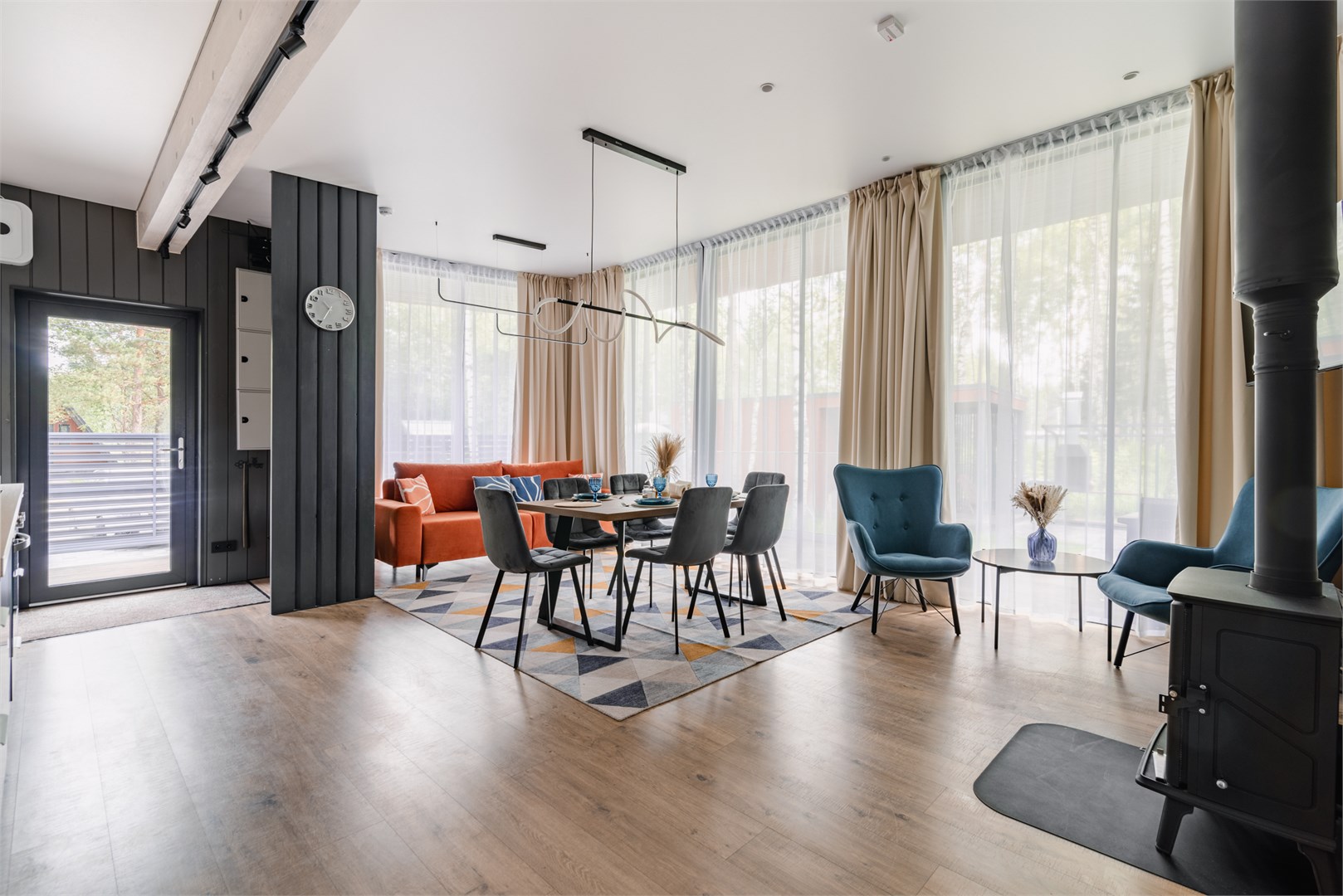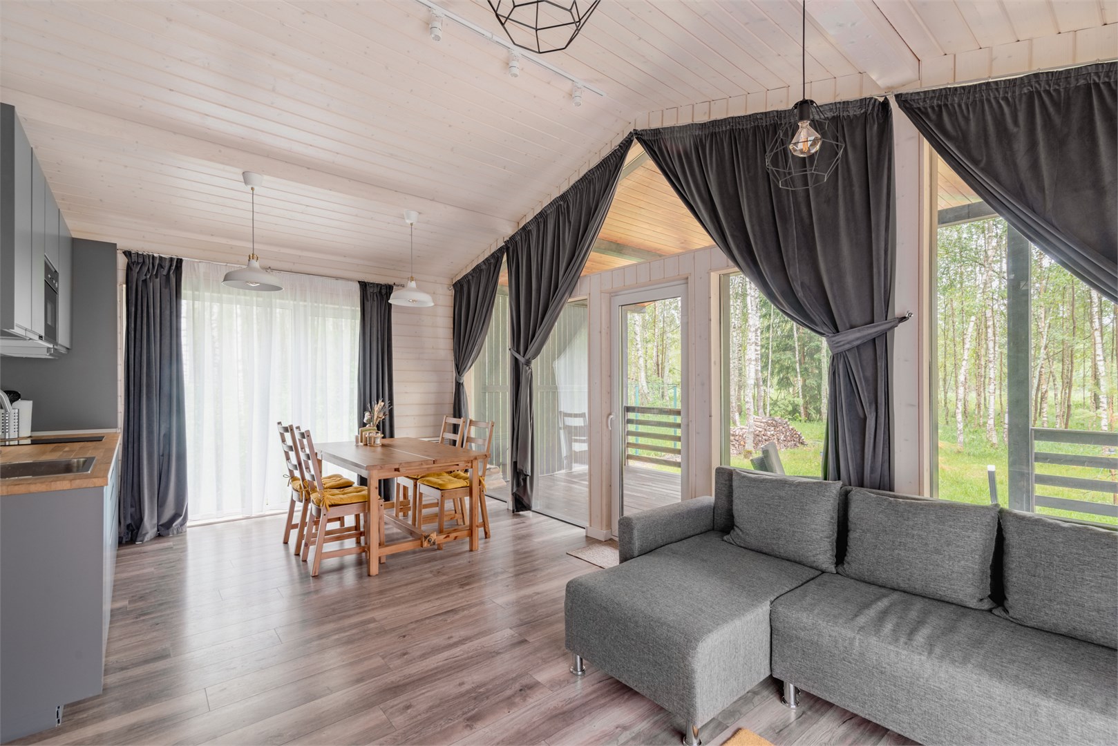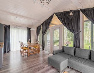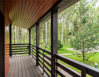 Коттеджи находятся в новом коттеджном поселке Сосновые озера, расположенном рядом с деревней Красный Огорок во Владимирской области. До ближайшего города Киржач 40 минут на авто. Этот вариант отлично подойдет для тех, кто хочет побыть вдали от городской суеты в комфортных семейных домиках, окруженных лесным пейзажем.