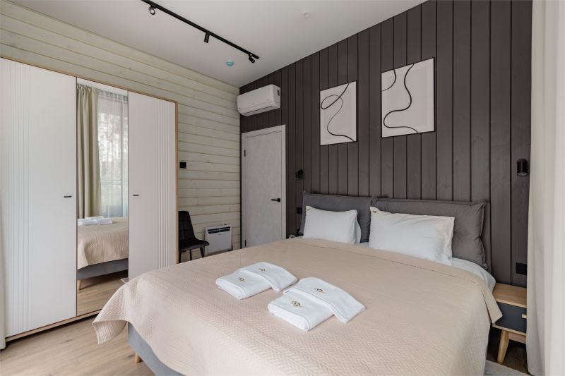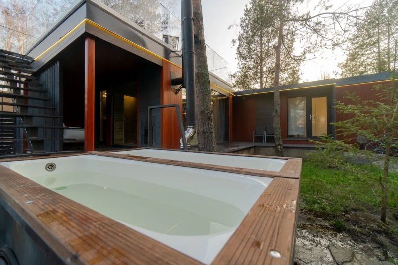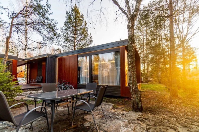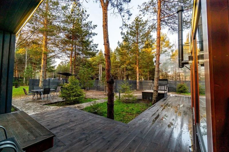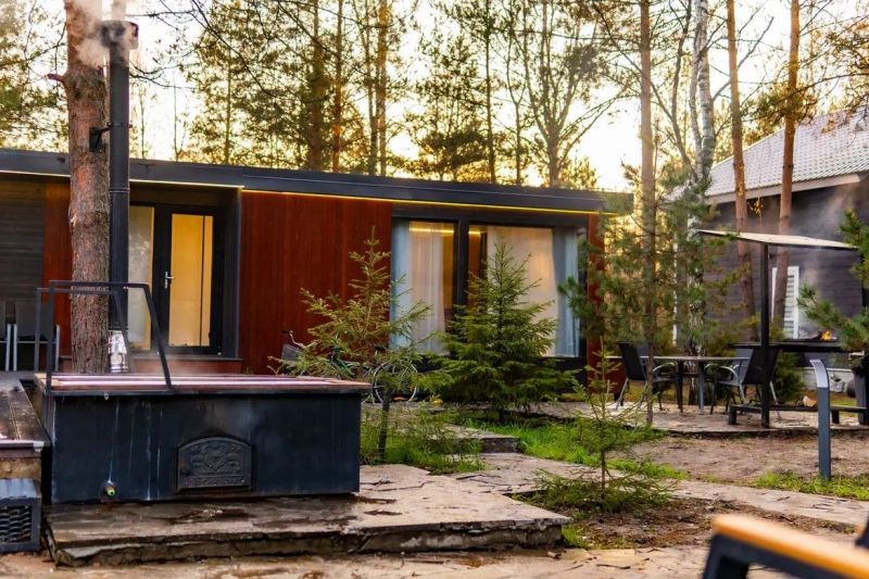 Коттеджи находятся на берегу живописного озера в самом сердце соснового леса. Семейные одноэтажные дома разместились на озелененной облагороженной территории. В распоряжении гостей 2-х, 4-х, и 6-местные номера разной категории комфортности с уютным современным интерьером. Среди удобств – кухня с микроволновой печью, холодильником, электроплитой и электрочайником, кондиционер, телевизор-ЖК, стиральная машина и индивидуальный санузел с душем, сауной и теплым полом. Некоторые номера оснащены духовым шкафом и камином.