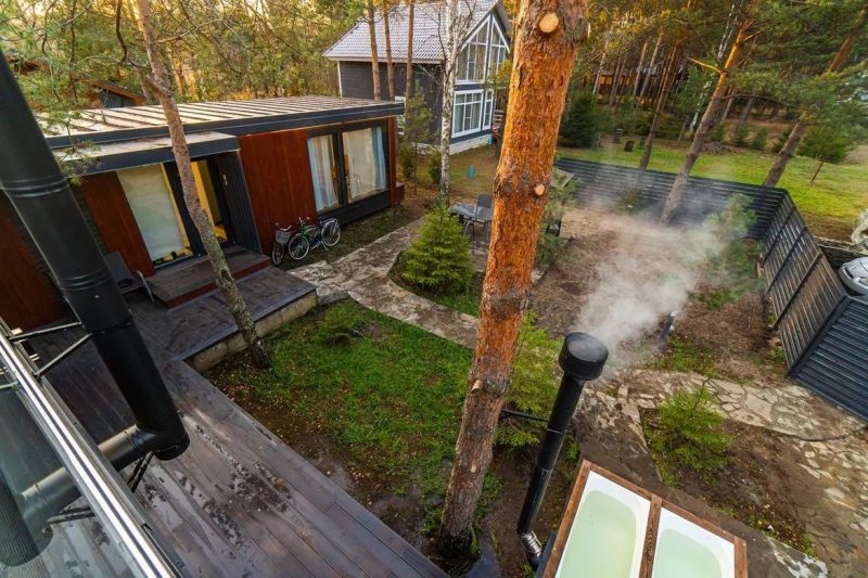 Рядом с каждым домиком обустроена территория для отдыха на свежем воздухе с мангалом. Среди прочего работает банный комплекс с русской баней и услугами авторского парения, а гостям на авто предоставляется открытая неохраняемая парковка.
